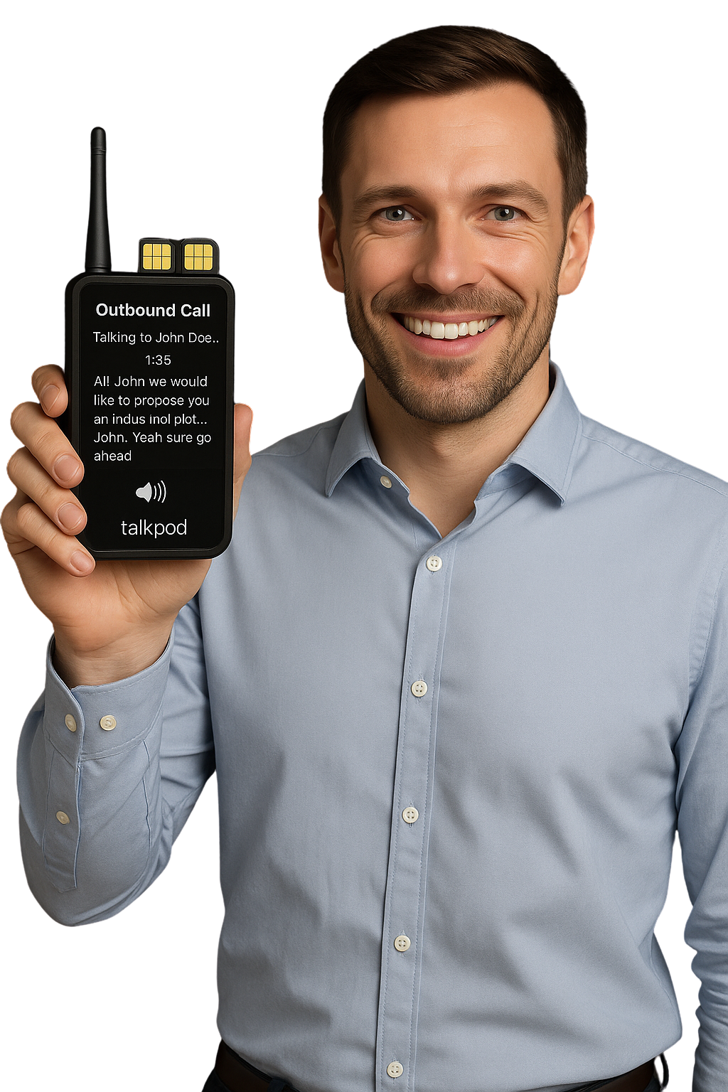 Unlike traditional SaaS tools, Talkpod is a physical device with built-in AI and SIM card support. It gives you full control over call data, number identity, and works even in low-connectivity environments.